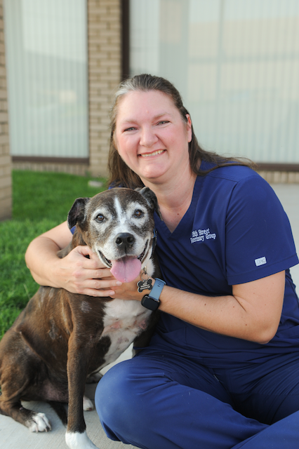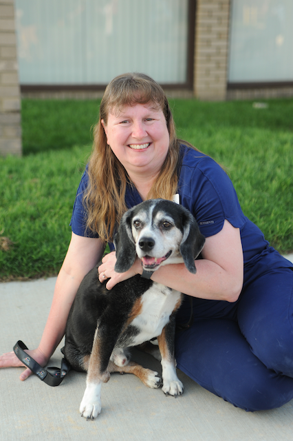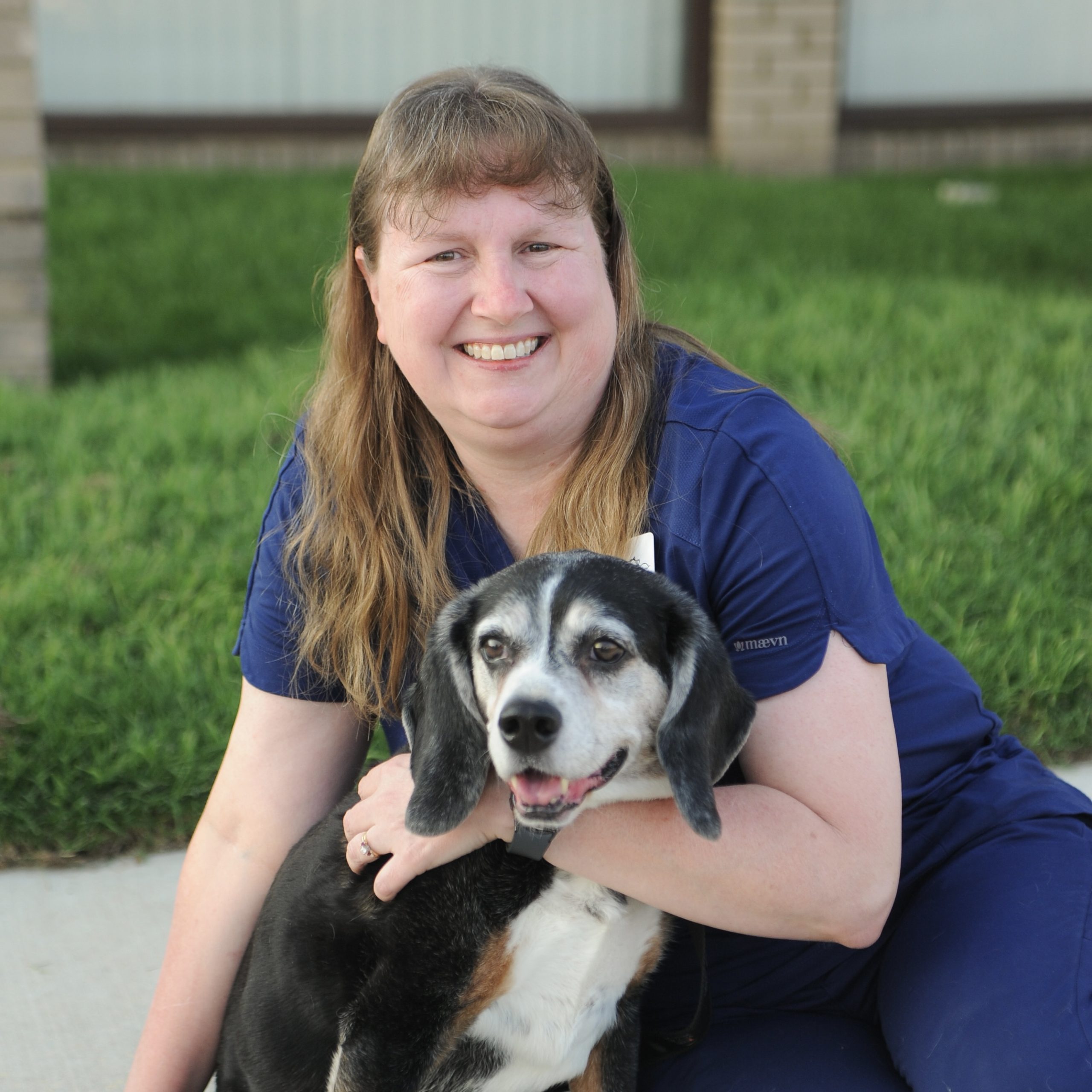 Kimberly grew up in Tulsa. She has always had a love for animals. Her parents were asked numerous times, ‘Look what I found! Can we keep him?’ She graduated from Edison High School and spent one year at Purdue. It was there that she first heard about Vet Techs. She started the Tech Program at TCC after teaching in daycare for several years. She did her practicum at 15th Street in 2002 and has been there since that time. She graduated and earned her license in 2003. In 2010, she was voted Oklahoma Veterinary Technician of the Year. She has two ‘fur babies’, Indy- a heeler mix and Jack- a beagle mix. She is married to Robert and they have a son named Chris. She enjoys watching baseball, cross stitching, and DIY home projects.