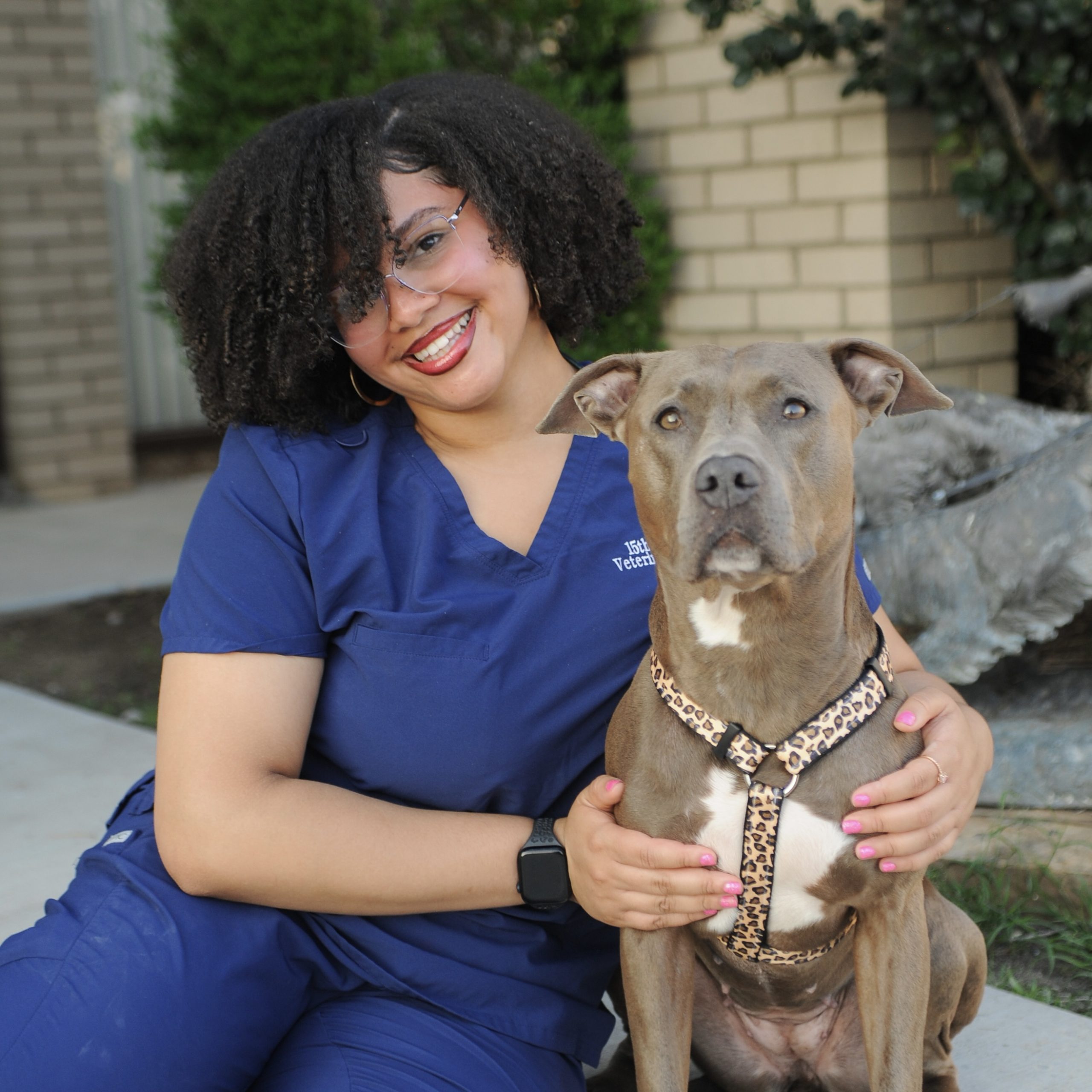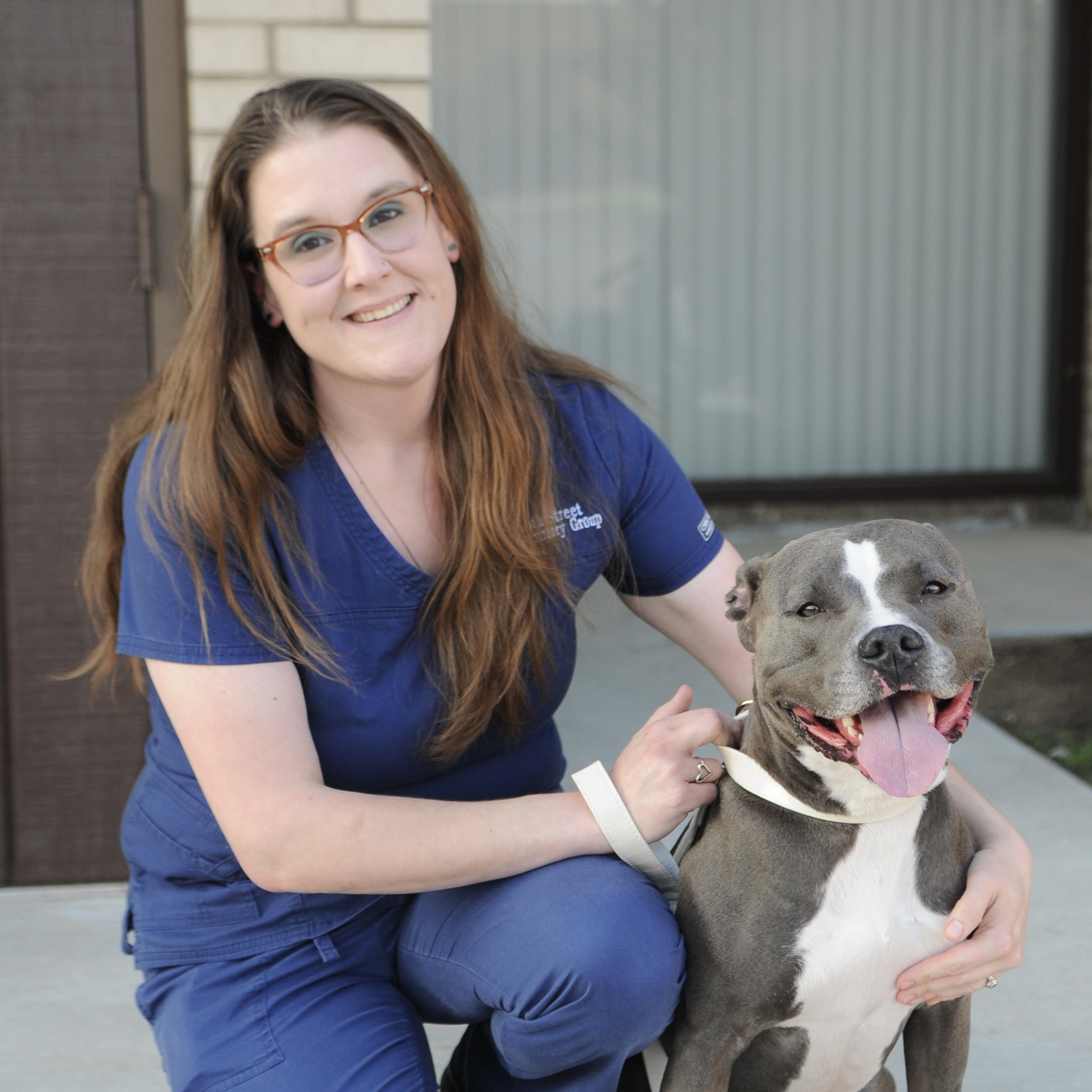 I am 30 years old and was born/raised in Tulsa, OK. I have worked in vet clinics for 10 years, starting as a kennel assistant. It wasn’t until 2018 that I became a licensed veterinary technician. Big dogs are always my favorite, however the Pitbull breed has a special place in my heart. I have one son and two dogs that keep up very well with my two step daughters. I wouldn’t have my life any other way! I love the people I work with so much!