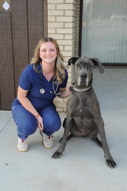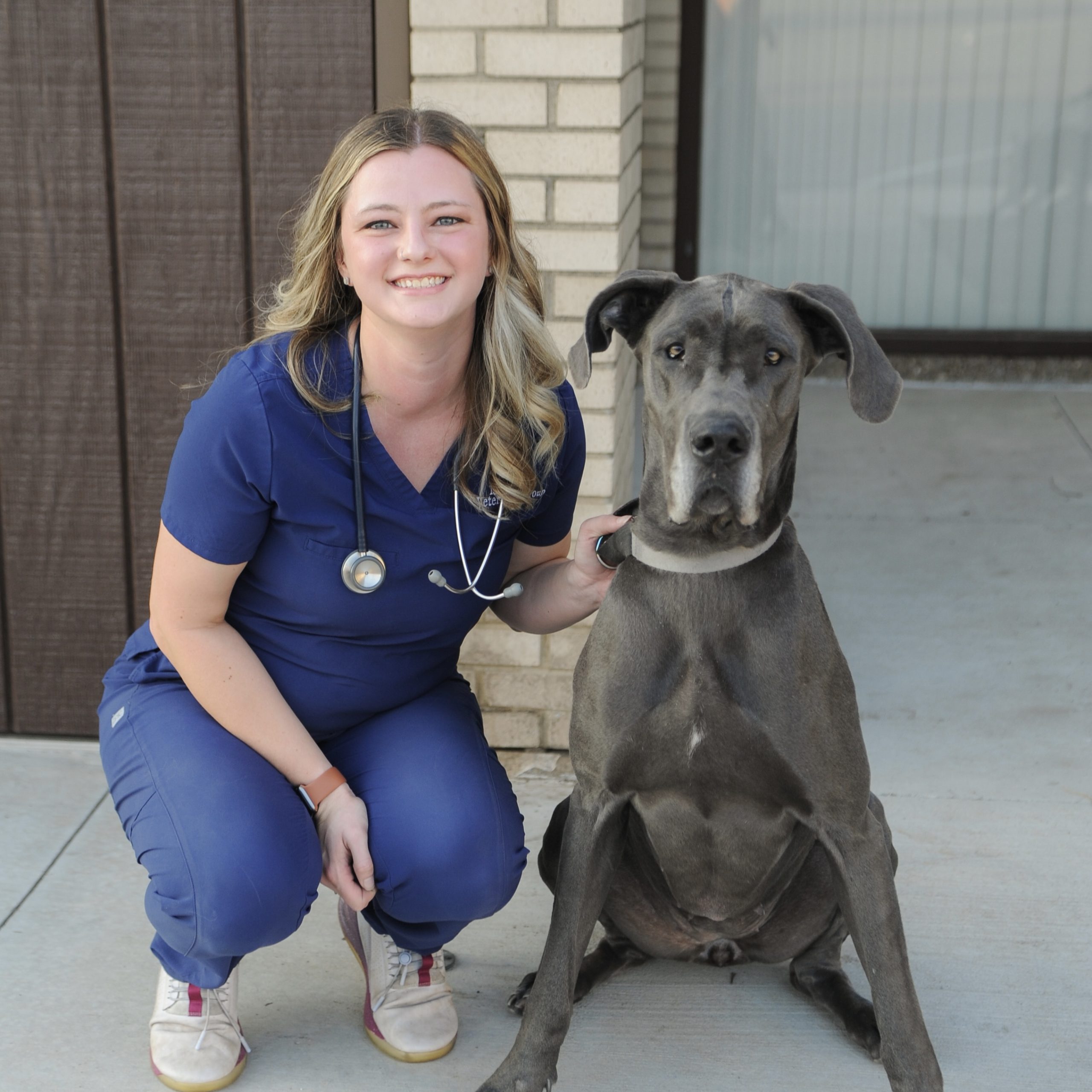 I was born and raised in Tulsa, OK. I have wanted to be a part of veterinary medicine and watched surgeries on animal planet since I was 2. When I graduated from Berryhill High School in 2017, I went to TCC to get an Associate’s Degree in Pre-Vet medicine to become a vet. I shadowed a clinic in Bristow and realized I fell in love with the tech side and went back to TCC to get an Associates of Applied Science in Vet Technology. I did my practicum here at 15th St Vet Group and instantly fell in love with the clinic, it’s staff, and it’s clients/patients. I passed and earned my license to become a Registered Veterinary Technician in August of 2022. I have 2 dogs, a black lab mix named Comet and a blue Great Dane named Nakoma. I love working for this clinic and the “new-found” family that I am now a part of!